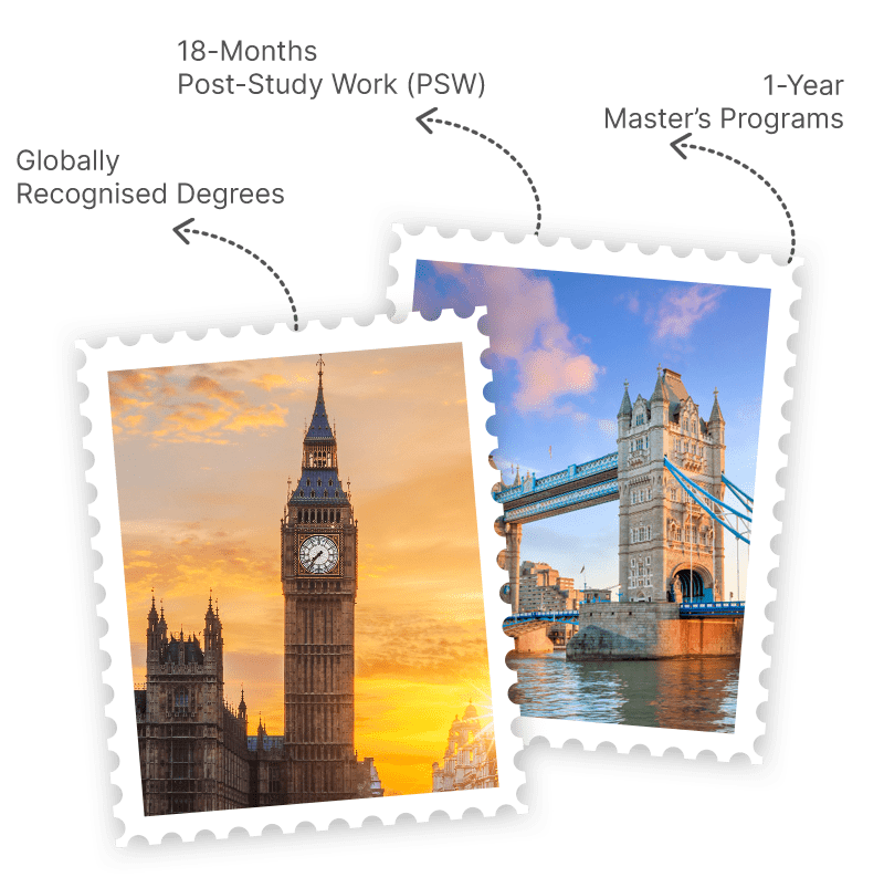 The United Kingdom is one of the world’s most preferred study destinations, offering internationally recognised degrees, shorter course durations, and excellent post-study work opportunities. With a rich academic heritage and modern teaching methods, the UK helps students build a strong global career.